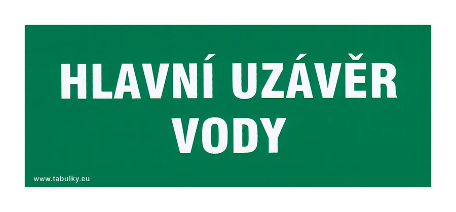 Tabulka - HLAVNÍ UZÁVĚR VODY 210 x 87 mm, samolepicí.