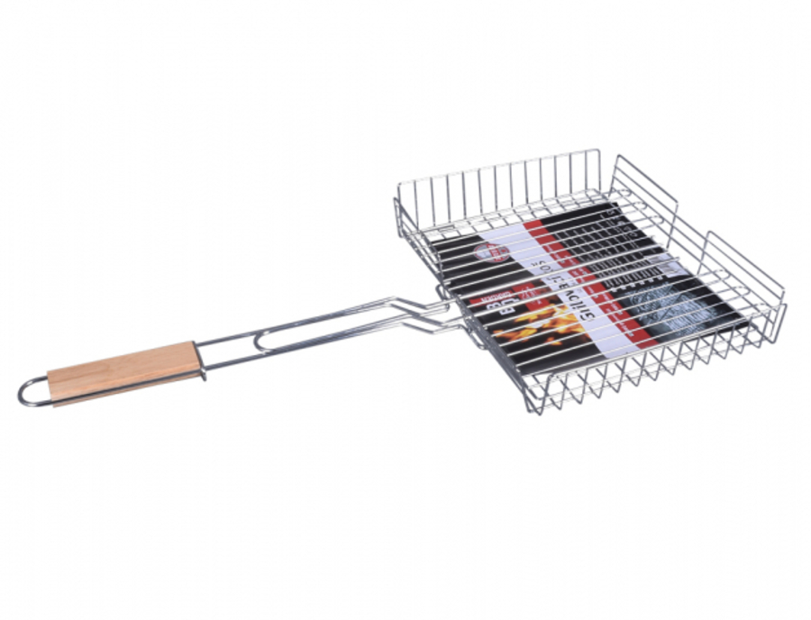Grilovací koš BARBECUE GARDEN jsou vhodné pro přípravu většího množství kusů masa, ryb a zeleniny. Tři výškově stavitelné polohy zajišťují ideální umístění připravovaného pokrmu. Koš je vyroben z pochromované oceli s rukojetí z gumovníkového dřeva, které je velmi odolné. Rozměry: délka 67 cm, šířka 32 cm, výška 26,6 cm, hloubka 6 cm. Barva: stříbrná.