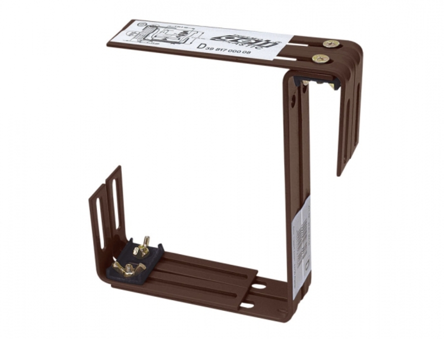 Kovový nastavitelný držák truhlíku je vhodný pro truhlíky maximálně do šířky 19,5 cm. Držák je vhodný k umístění na zábradlí o maximální šířce 14 cm. Nosnost dvou kusů držáků je 25 kg. Barva: hnědá. V balení jsou 2 kusy.