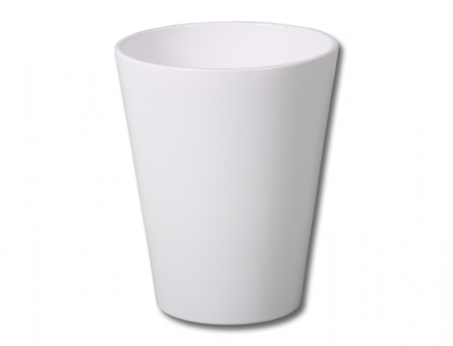 Hladký glazovaný lesklý jemně kónický keramický obal. Vhodný pro květináče s rostlinami především na orchideje. Průměr: 13 cm. Barva: bílá.