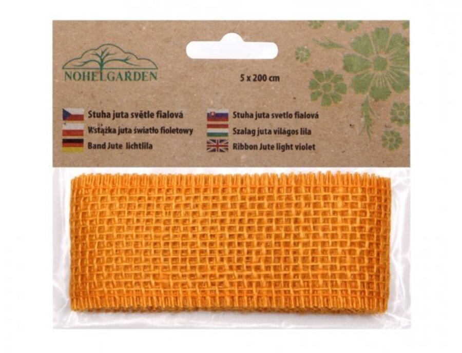 Jemně tkaná jutová barvená stuha pro dekoraci vázaných květin nebo pro aranžování sušených kytic. Šířka: 5 cm, délka stuhy: 2 m.