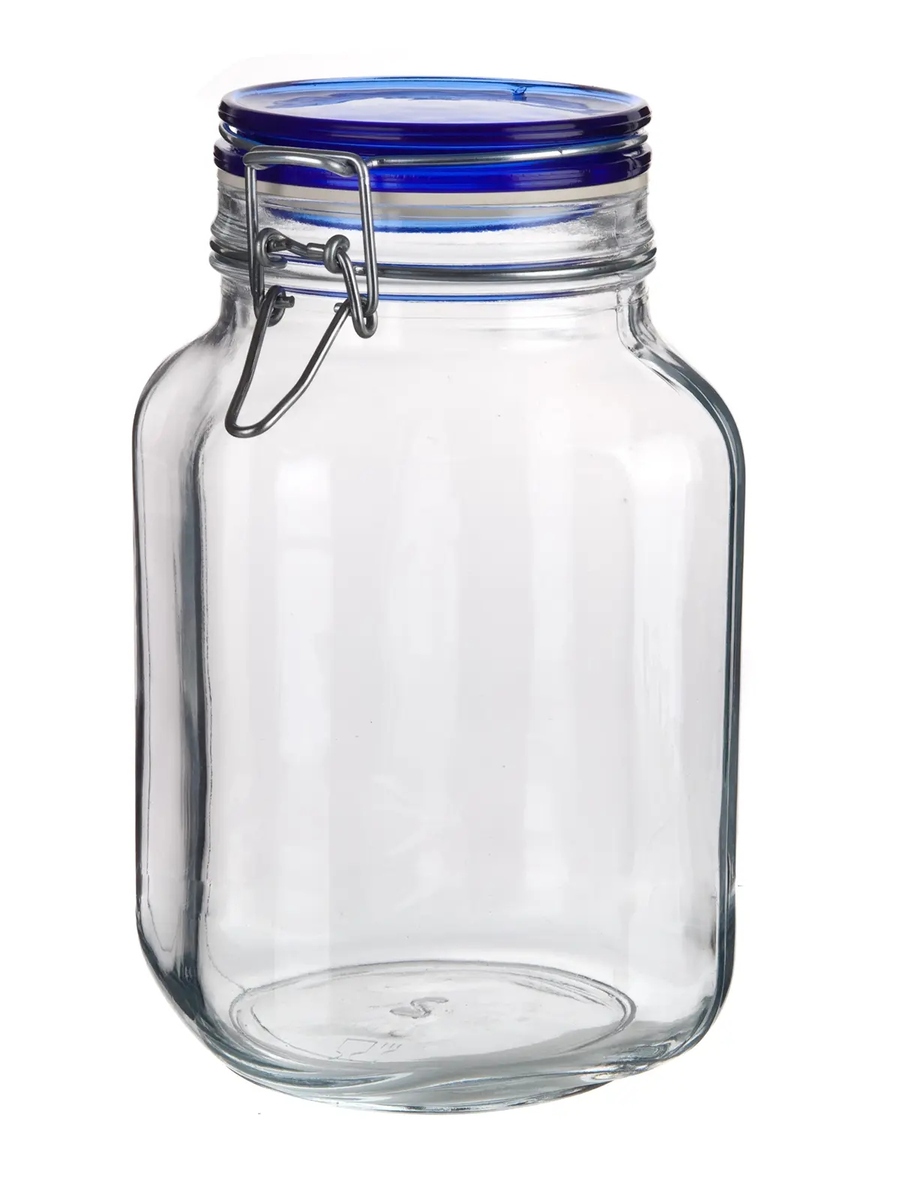 Dóza hermetická 2000 ml, skleněná s patentním uzávěrem, FIDO Blue.