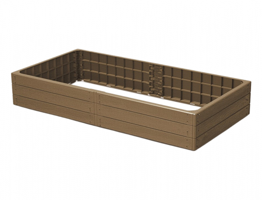 Plastový vyvýšený záhon v designu imitujícím dřevěná prkna vytváří v zahradě funkční předěl mezi plochou záhonu a okolní zelení, více kusů lze stohovat na sebe a využít také jako palisádu. Obdélníkový půdorys poskytuje dostatek prostoru pro pěstování zeleniny i okrasných rostlin. Rozměry: délka 149 cm, šířka 76 cm, výška 25 cm. Barva: světle hnědá.