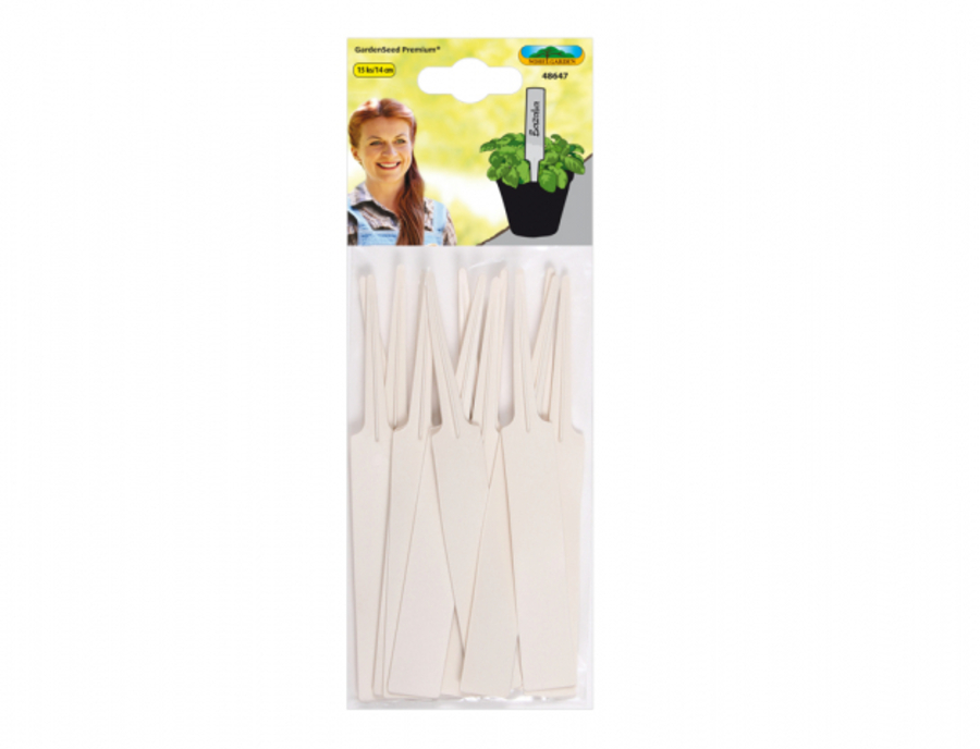 Popisovací plastová jmenovka pro označení rostlin je zapichovací. Barva: béžová. Délka: 14 cm, šířka: 1,8 cm. V balení je 15 kusů.