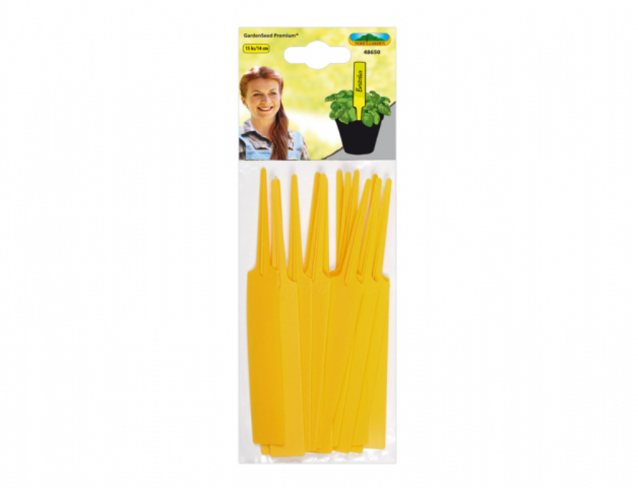Popisovací plastová jmenovka pro označení rostlin je zapichovací. Barva: žlutá. Délka: 14 cm, šířka: 1,8 cm. V balení je 15 kusů.