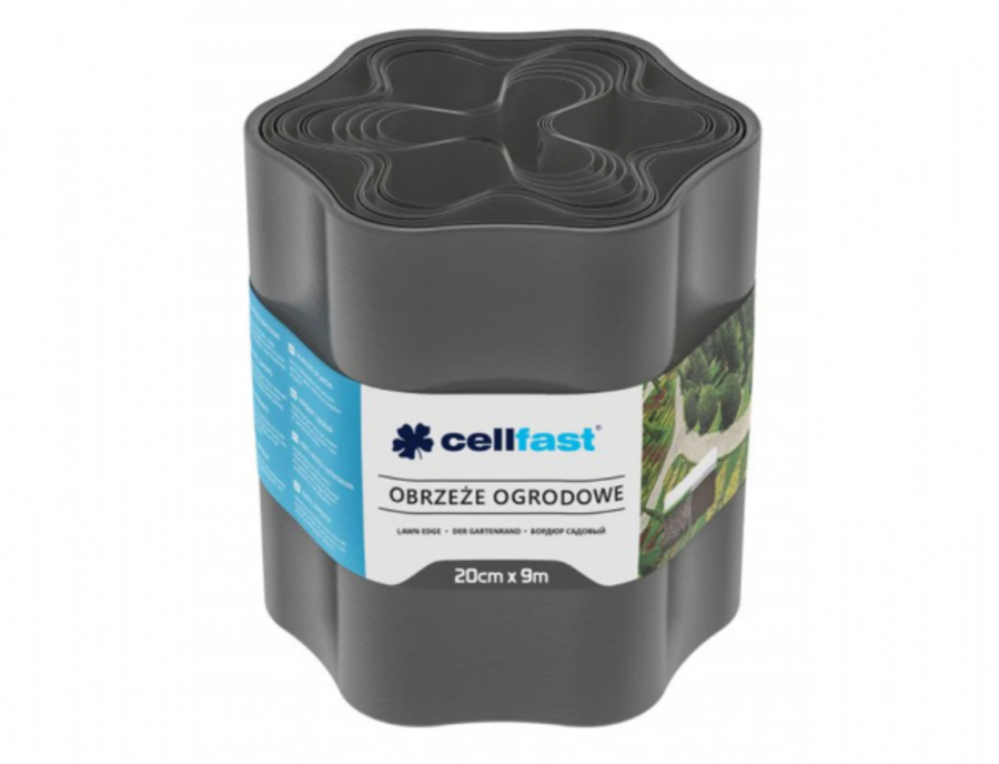 Plastová obruba zabraňuje trávníku v přerůstání, perfektně oddělí trávník od zkultivovaných částí zahrady a záhonků. Instaluje se na úroveň terénu. Typ obruby: zvlněná. Je odolná vůči UV záření i vůči mrazu. Výška: 20 cm, délka: 9 m. Barva: antracitová.