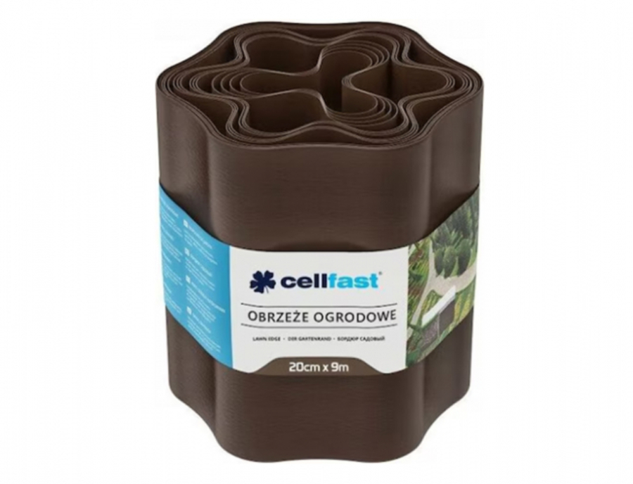 Plastová obruba zabraňuje trávníku v přerůstání, perfektně oddělí trávník od zkultivovaných částí zahrady a záhonků. Instaluje se na úroveň terénu. Typ obruby: zvlněná. Je odolná vůči UV záření i vůči mrazu. Výška: 20 cm, délka: 9 m. Barva: hnědá.