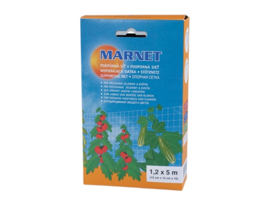 Velice pevné a praktické sítě pro pěstování veškeré popínavé zeleniny, jako jsou okurky, fazole, hrách, rajčata aj. Vhodné jsou i pro tvorbu opěr při pěstování popínavých rostlin, jako klematisů nebo břečťanů. V horizontální poloze se s úspěchem používají k pěstování rostlin k řezu. Pěstovaná zelenina je na síti provzdušňována a proto se výrazně oddaluje napadení rostlin plísňovými chorobami. Dostatečným přístupem slunce plody dozrávají rychleji. Rozměr: 1,2 x 5 m. Velikost ok 12 x 12 cm.