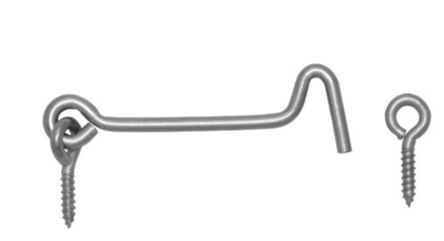 Háček a očko k zašroubování do dřeva se používá j zajišťování různých dvířek, vrátek a okenic.