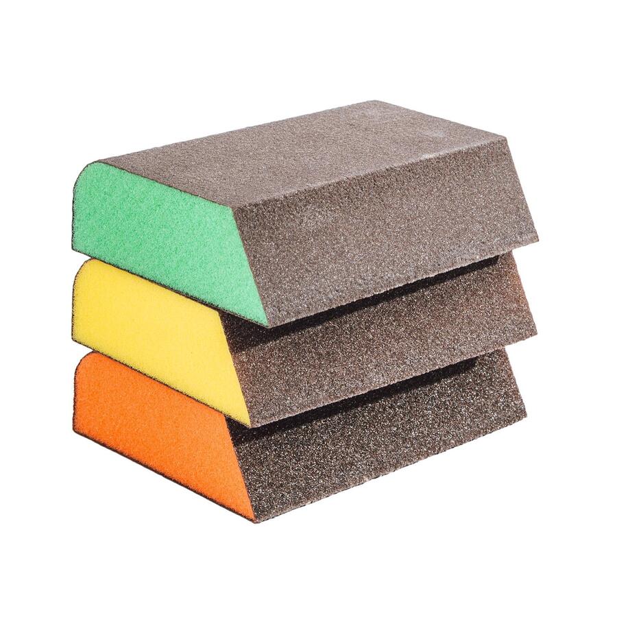 Tuhá brusná houba se zkosenou hranou je vhodná pro přesné broušení ploch, rohů a těžko přístupných míst. Zkosení umožňuje pohodlné opracování hran a přechodů, zatímco rovné plochy jsou vhodné pro běžné srovnání povrchu.