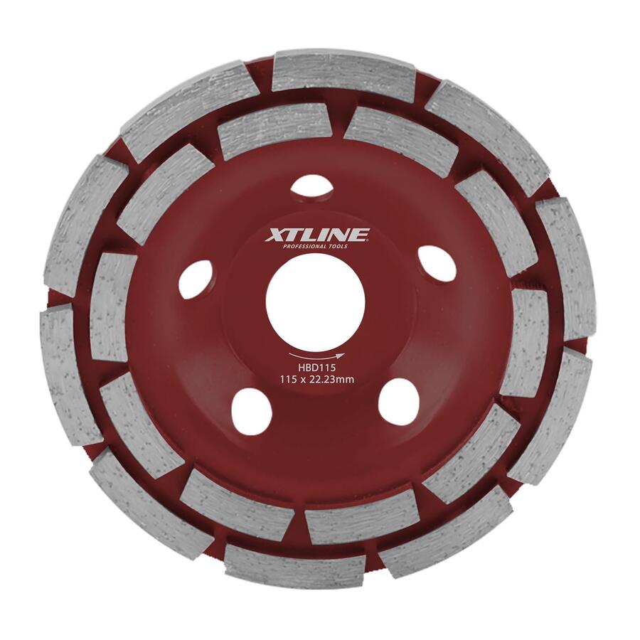Diamantový dvouřadý brusný kotouč je ideální pro broušení tvrdých stavebních materiálů, jako je beton, cihly, mramor, žula, kámen apod. Určeno pro použití v úhlových bruskách. Dvouřadý kotouč nabízí středně rychlý úběr materiálu při střední hrubosti výsledného povrchu. Součástí balení je redukční kroužek (1ks) s vnitřním průměrem 20 mm.