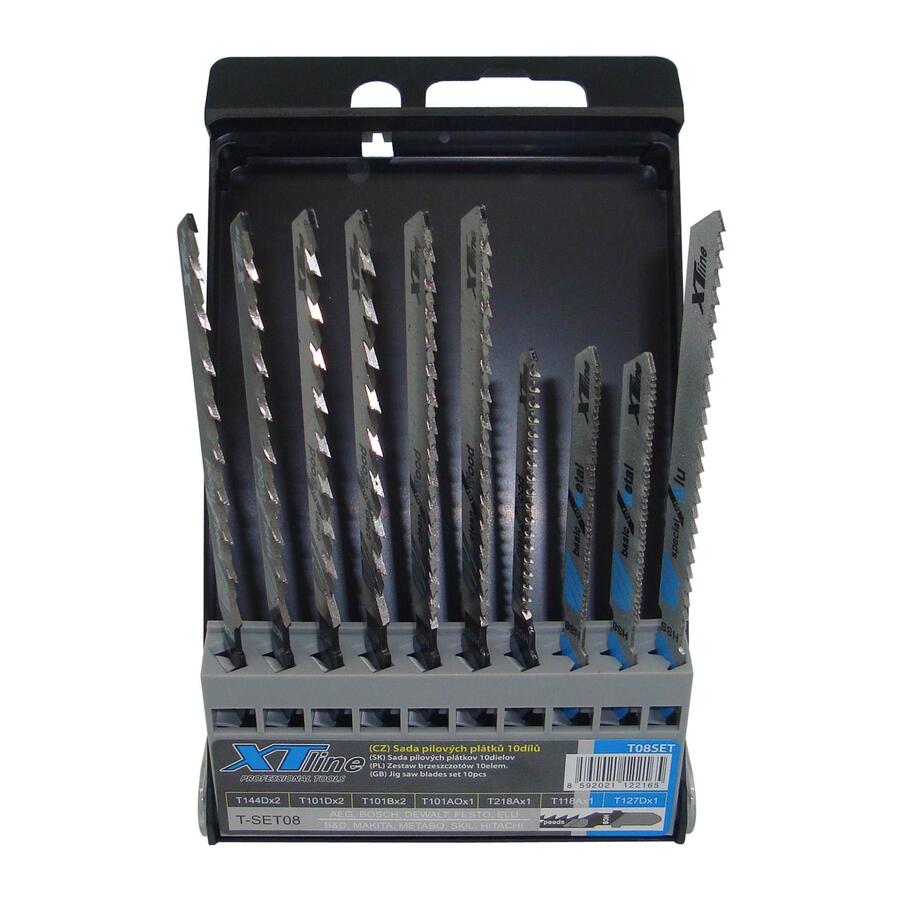 Sada 10 plátků do přímočarých pil pro řezání dřeva, kovu a plastů.