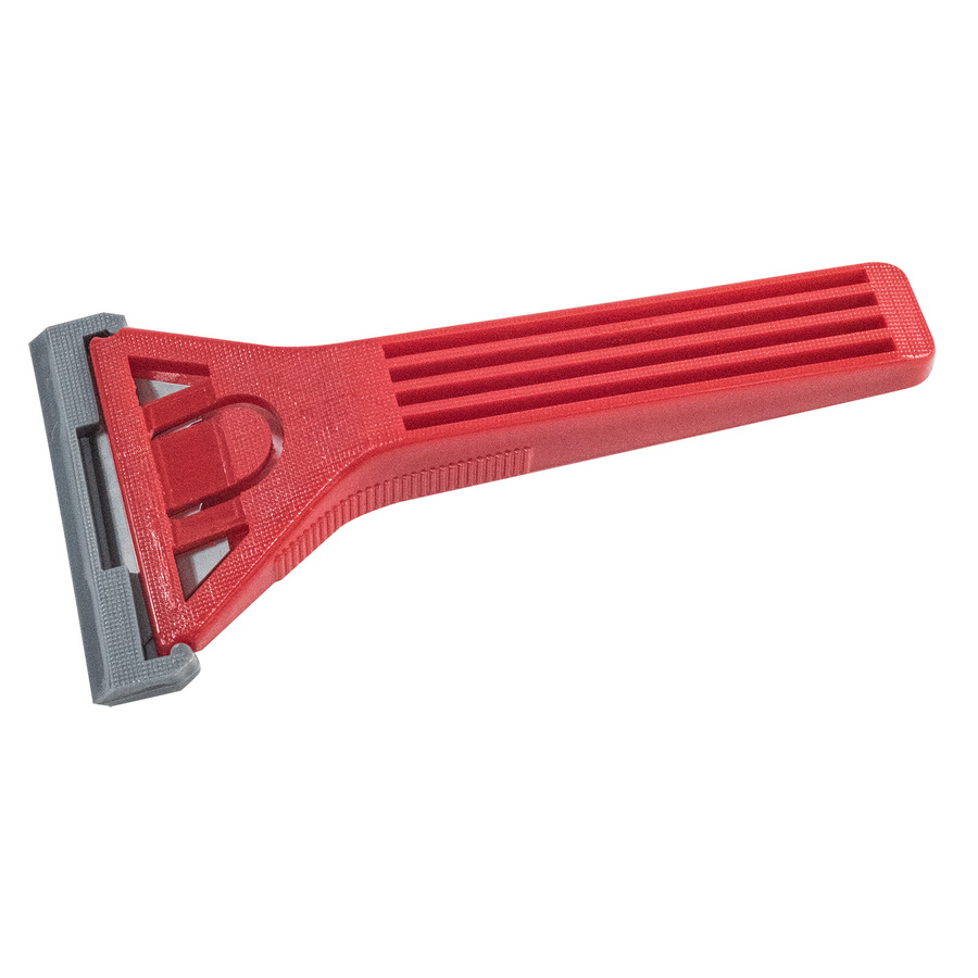 Plastová škrabka s velice ostrým břitem pro odstraňování nálepek a nečistot ze skla a hladkých materiálů.