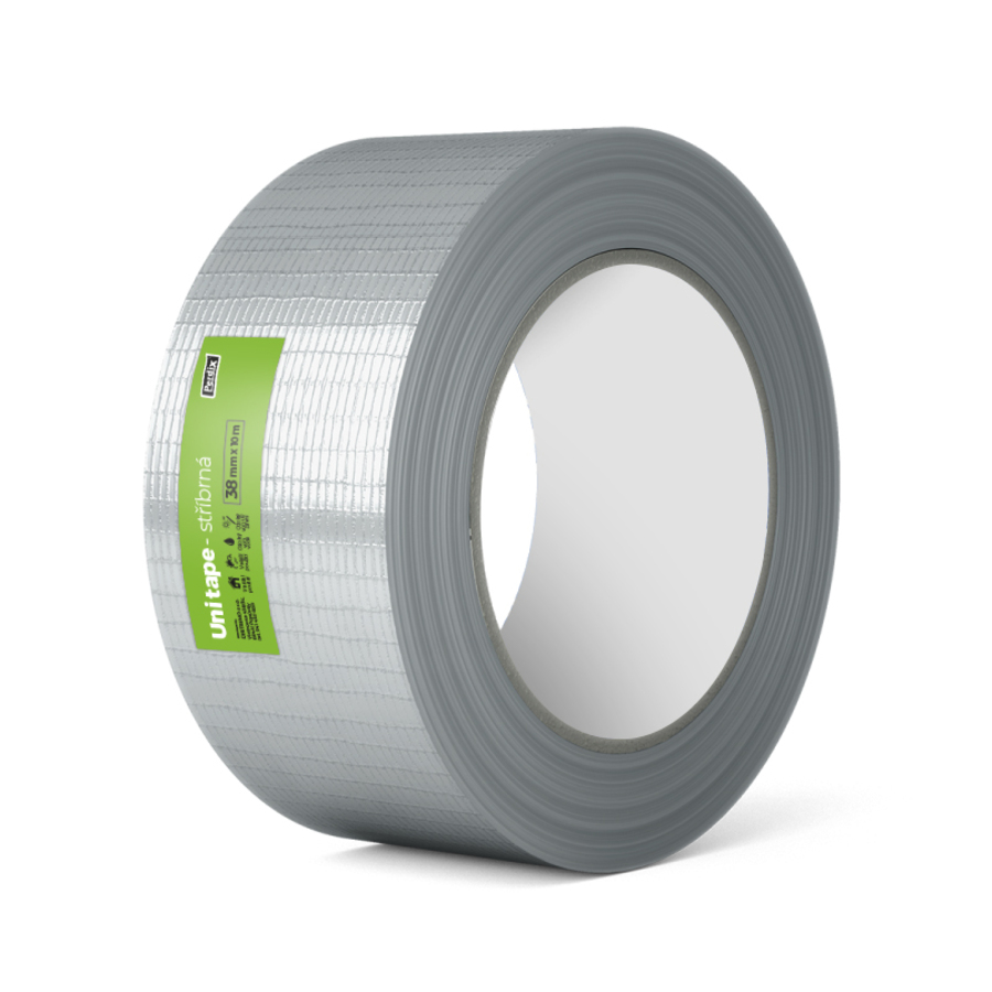 Univerzální víceúčelová vodotěsná páska Uni tape je jednostranně lepící páska příčně přetržitelná, vyztužená bavlněnou tkaninou. Je polaminována šedostříbrnou PE vrstvou. Je vodo i plynotěsná skvěle drží na takových problematických podkladech, jako je omítka, zdivo a beton.