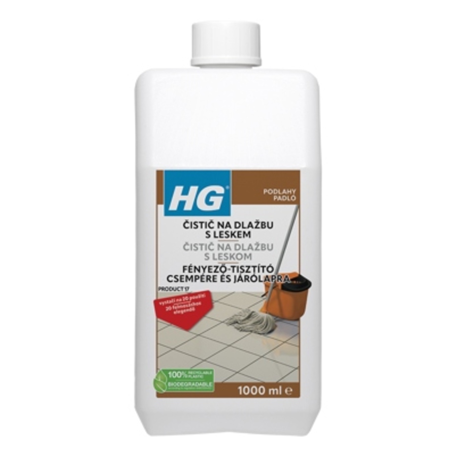 HG čistič na dlažbu s leskem nalijte 50 ml do kbelíku (5 l) s vlažnou vodou. Poté vytřete podlahu řádně vyždímaným mopem nebo hadrem a pravidelně je namáčejte v roztoku. Podlahu neoplachujte ani znovu nevytírejte a nechte ji oschnout. 1 litr vystačí na 20 použití, balení je tedy zároveň levné!