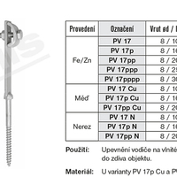 Podpěra vedení PV 17. Pro upevnění vodiče na vlnitém eternitu nebo pomocí hmoždinek do zdiva objektu. Délka 100mm, vrut 8 mm