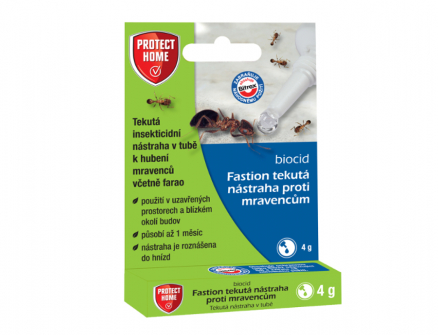 Přípravek je určen k hubení mravenců vyskytujících se v budovách (obytné domy, byty, provozy, sklady apod.) nebo jejich okolí - mravence obecného (i jiné příbuzné druhy) a mravenců farao. Nástraha je požerová a je dělnicemi zanášena do hnízd, kde působí i na další členy kolonie (larvy a královny). Obsahuje Bitrex - hořké činidlo, které zabrání požití člověkem nebo domácím mazlíčkům. Účinnost min. 4 týdny. Balení: 4 g.