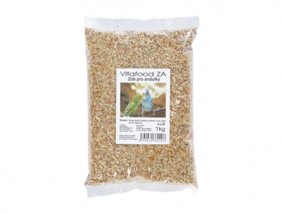 Kompletní směs semínek a zrn pro andulky a menší exotické ptactvo. Složení: proso (žluté, červené, zelené) a oves nahý. Kmná dávka činí 3 - 4 káv. lžičky na 1 ks / den. Balení: 1 kg.