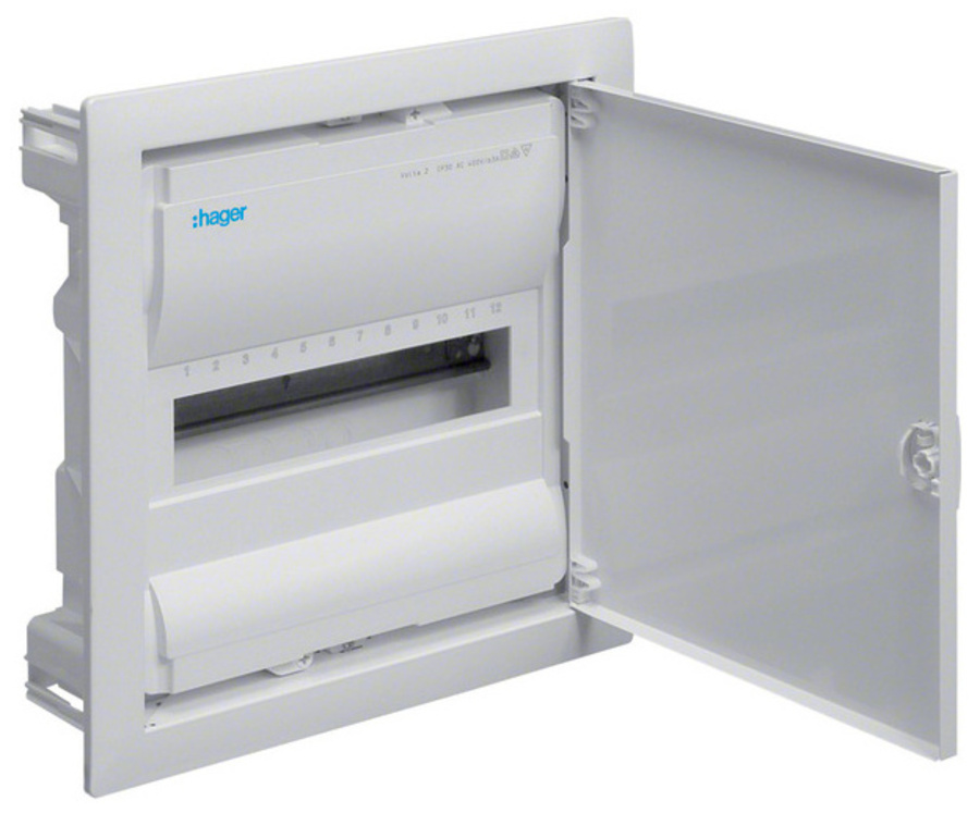 HAGER Skříň VOLTA VU12NE, 12TE, 1-řadá, zapuštěná, plastová vana, kovová plná dvířka, šrou