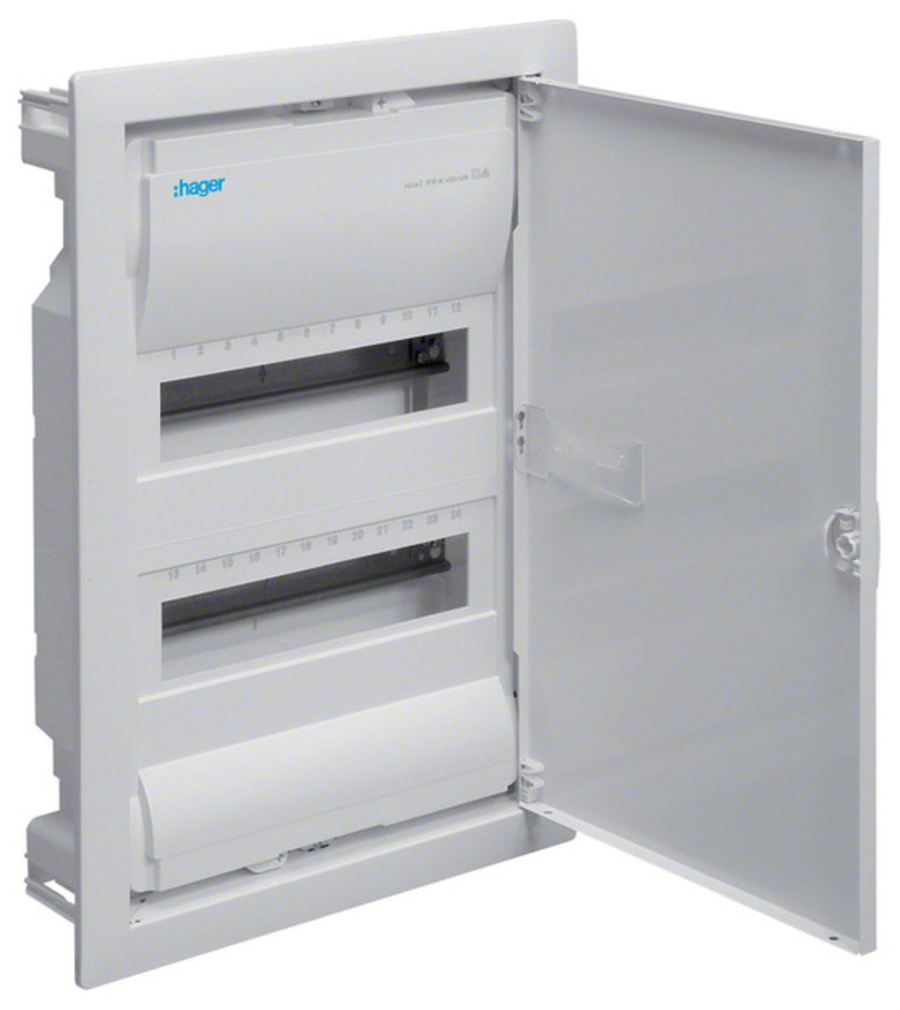 HAGER Skříň VOLTA VU24NC, 24TE, 2-řadá, zapuštěná, plastová vana, kovová plná dvířka, bezš