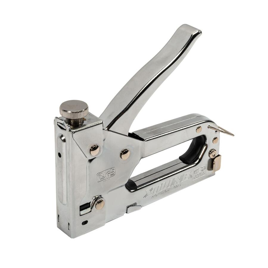 Celokovová profesionální sponkovačka umožňuje nastavitelný doraz a obsahuje velký zásobník na sponky. Do sponkovačky lze použít výšku sponky 6,8,10,12 a 14 mm.