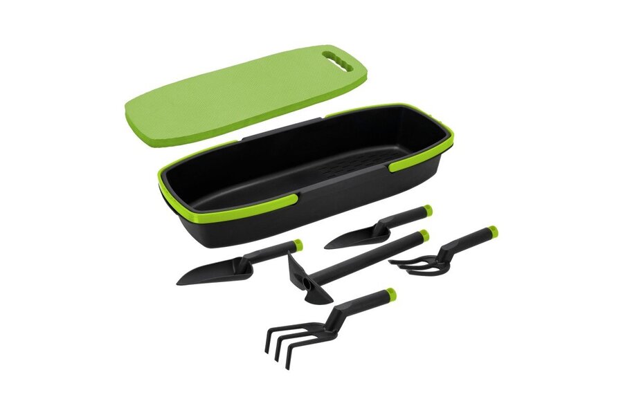 součástí sady je univerzální košík, podložka a 5 kusů nářadí