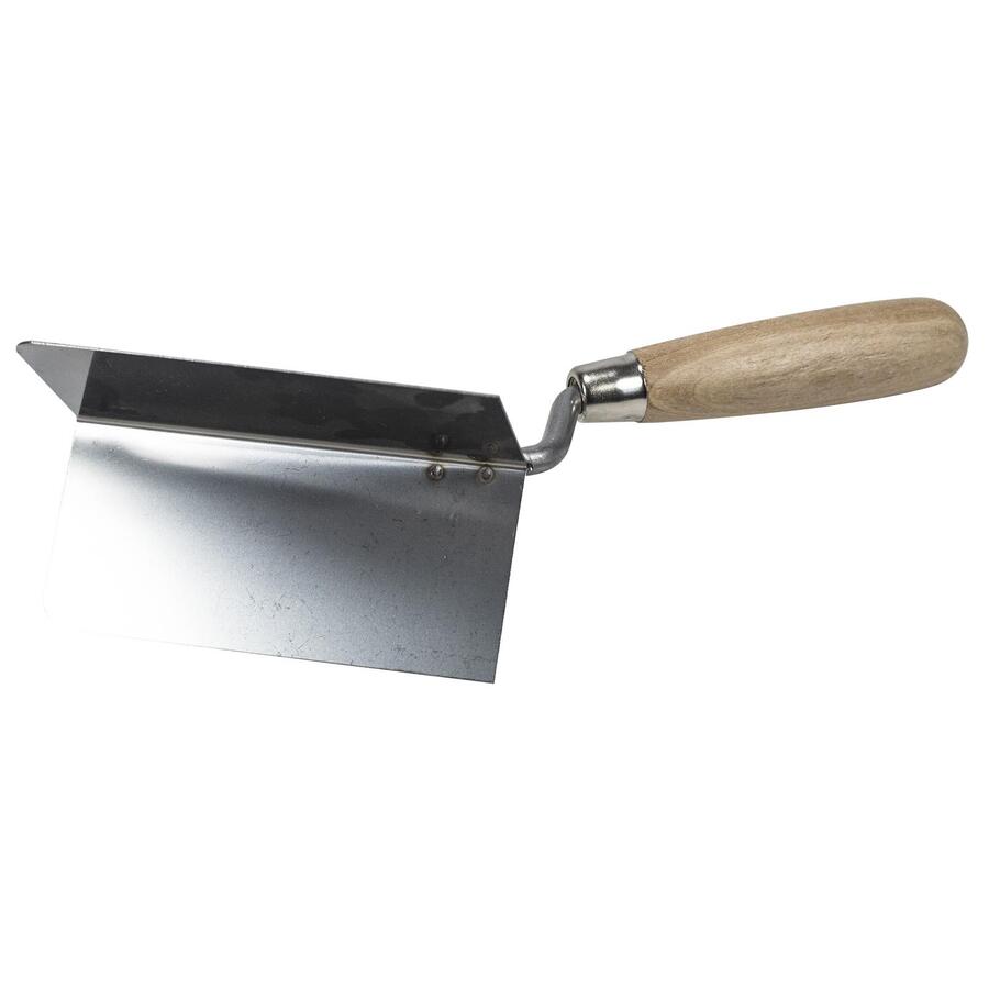 Zednická lžíce pro dokončovací práce, dřevěná rukojeť.